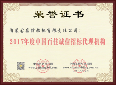 2017年度中國(guó)百佳誠(chéng)信招標(biāo)代理機(jī)構(gòu)
