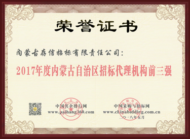 2017年度內(nèi)蒙古自治區(qū)招標(biāo)代理機(jī)構(gòu)前三強(qiáng)