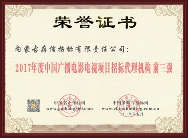 2017年度中國(guó)廣播電視項(xiàng)目招標(biāo)代理公司前三強(qiáng)