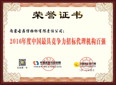 2016年度內(nèi)蒙古自治區(qū)招標(biāo)代理機(jī)構(gòu)首選品牌