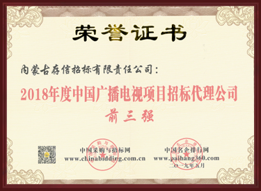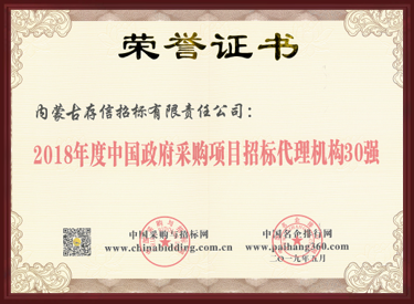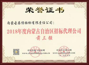 2018年度內(nèi)蒙古自治區(qū)招標(biāo)代理公司前三強(qiáng)