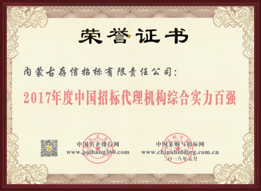2017年度中國(guó)招標(biāo)代理機(jī)構(gòu)綜合實(shí)力百?gòu)?qiáng)